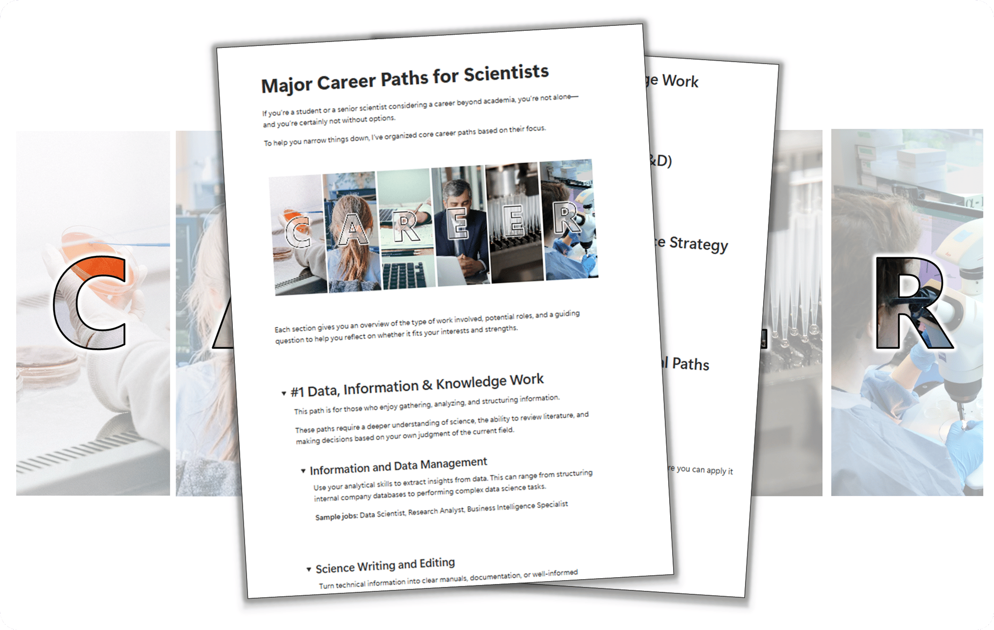 I'm a former scientist who shares which career paths for scientists exist and how to identify, apply for and get your dream job.